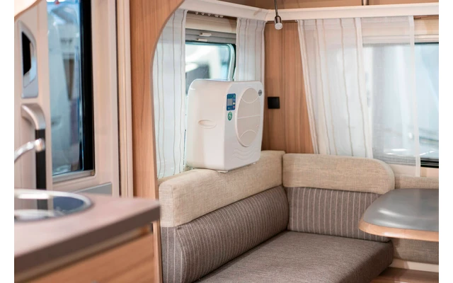 Der Eurom AC2401 mit seiner bescheidenen Leistung von 2400 BTU ist für die kompakteren Wohnwagen geeignet. Diese Split-Unit-Klimaanlage kann einen Raum bequem bis zu 16 m³ kühlen. Der eingebaute Timer kann von 0,5 bis 7,5 Stunden eingestellt werden und die Temperatur ist auf dem Display deutlich sichtbar. Dank seines modernen Erscheinungsbilds sieht der AC2401 in keinem Wohnwagen fehl am Platz aus. Der AC2401 verfügt über einen vormontierten Abstandshalter und verbesserte Rohrdurchführungen, sodass diese Caravan-Klimaanlage einfach zu installieren ist.